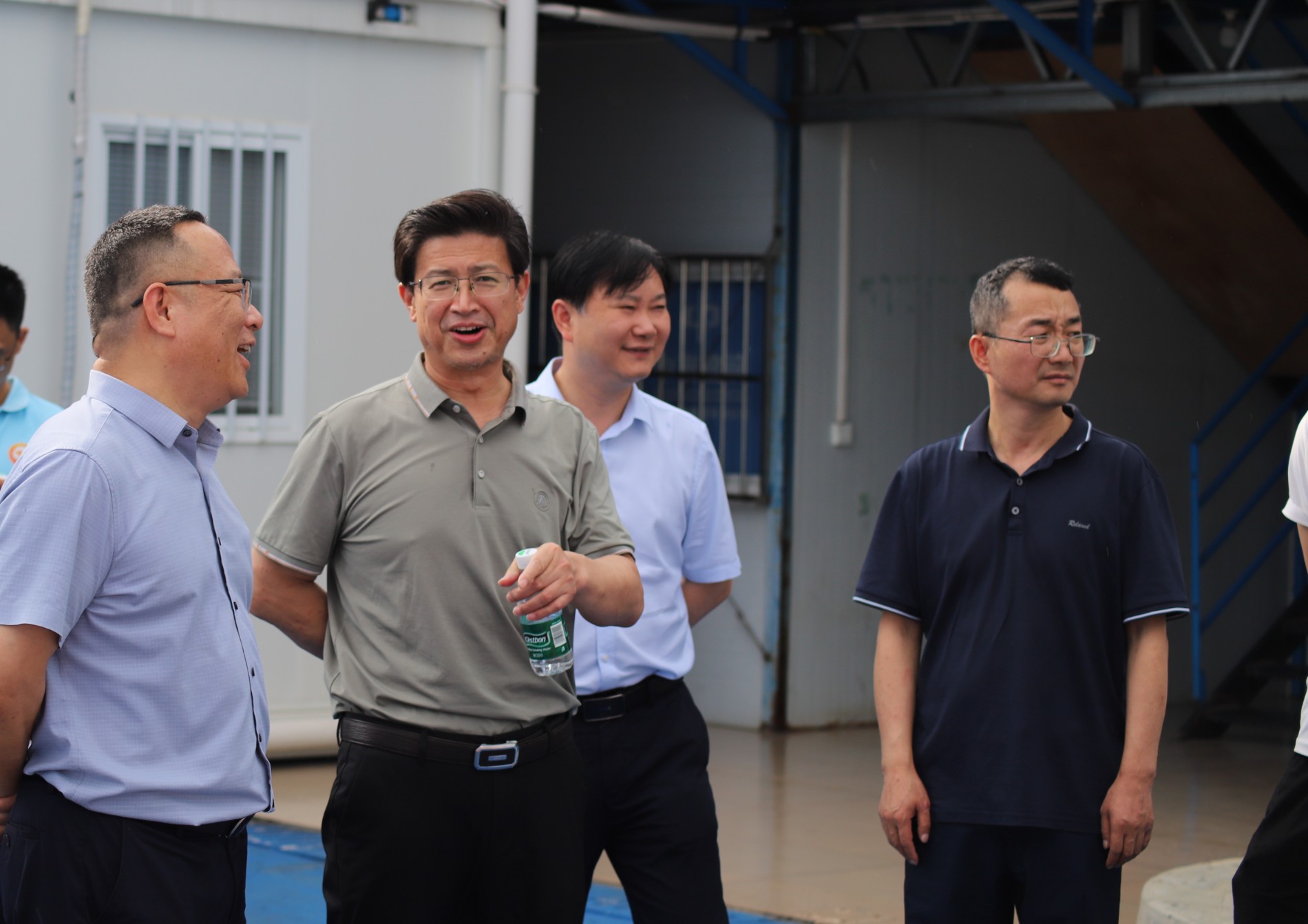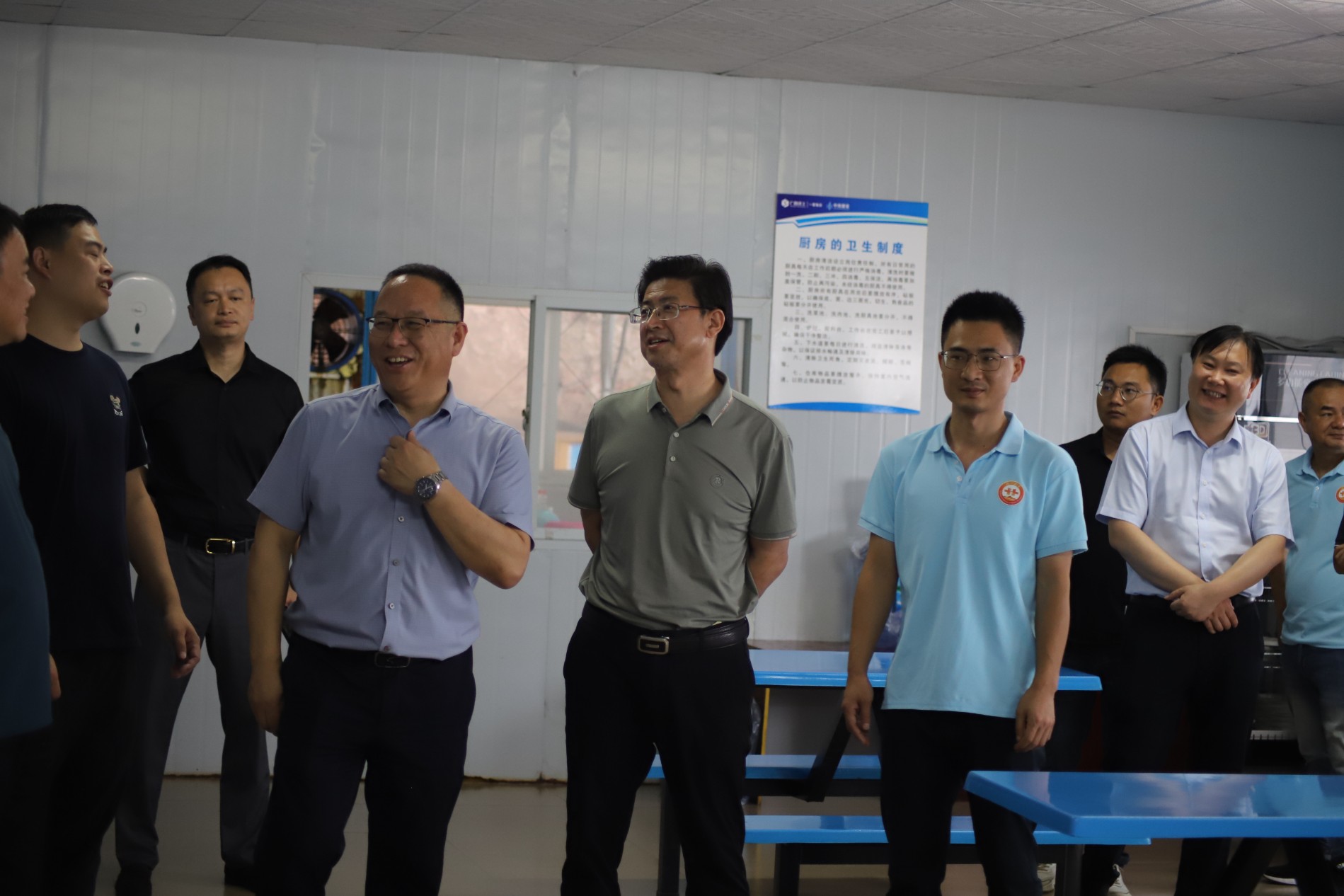 雷建斌一行实地审查了项目建设现场、职工食堂、职工宿舍等重点区域,周全详尽相识项目建设希望情形、职工生涯状态以及党建事情开展情形。时代,雷建斌一行还亲热慰问了一线员工,对项目团结党支部贯彻执行中央八项划定精神提出指导意见。